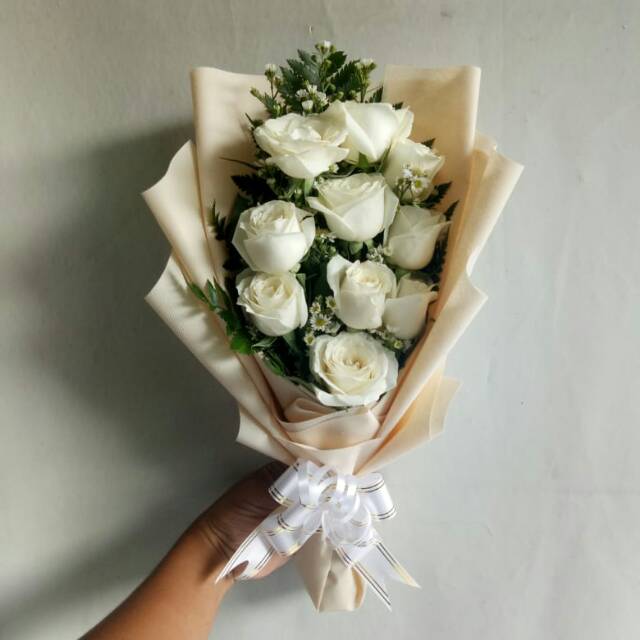 Hand Bouquet Bunga Mawar Putih Asli Bunga Wisuda Hadiah Kado