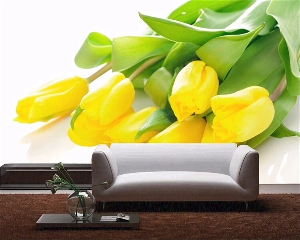 Us 8 1 46 Off Beibehang Wallpaper Kustom Foto Mural Kuning Tulip Bunga Kuning Tv Ruang Duduk Mewah Kamar Tidur Papel De Parede In Wallpaper From
