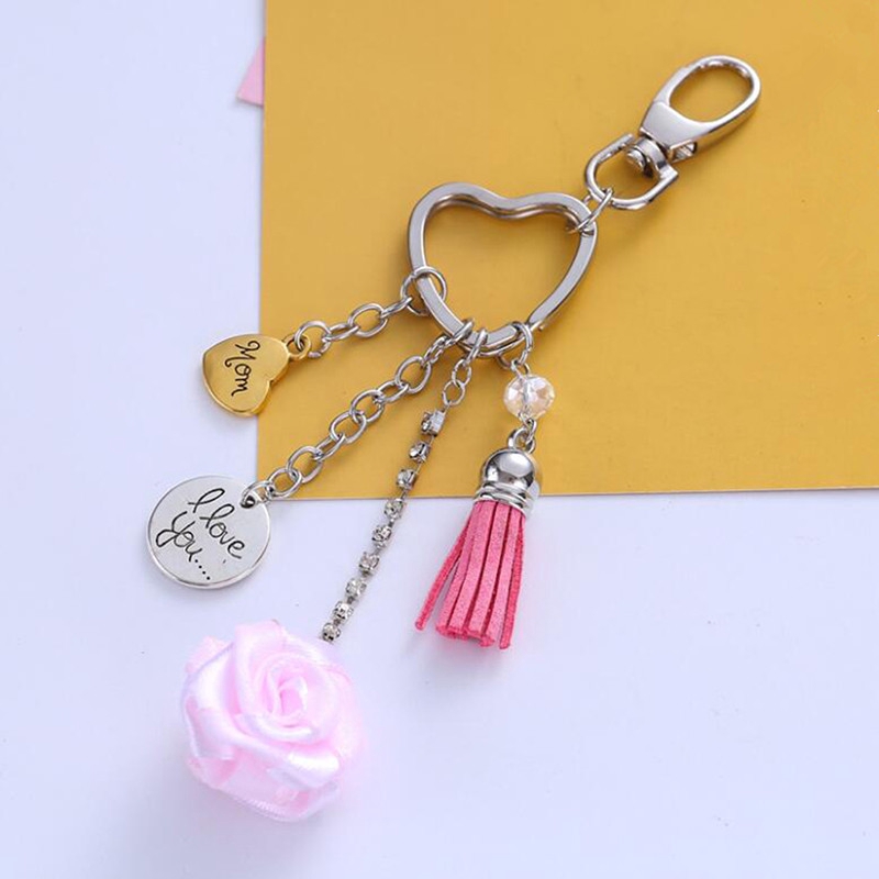Gantungan Kunci Bentuk Hati Tulisan I Love You Mom Rumbai Bunga Mawar