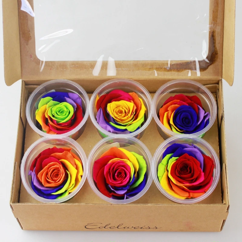Us 33 25 Ekuador Impor Warna Warni Pelangi Mawar Diy Premium Preserved Bunga 6 Pcs Mawar Kotak Set 5 6 Cm Pesta Pernikahan Taman Dekorasi In