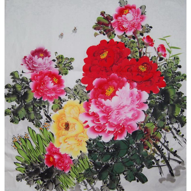 Pipa Hand Painted Gambar Bunga Peony Ukuran 6ft
