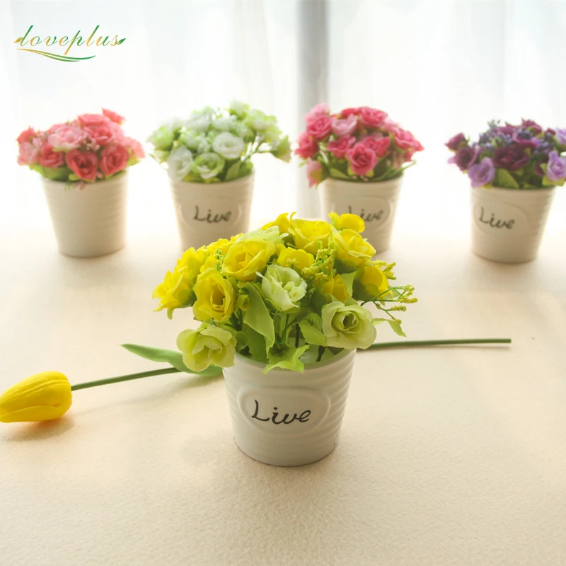 Us 4 99 Zinmol Murah Roses Buatan Sutra Palsu Bunga Mawar Bonsai Untuk Dekorasi Pernikahan Kecil Dekorasi Meja Dengan Pot 1 Set In Buatan Bunga