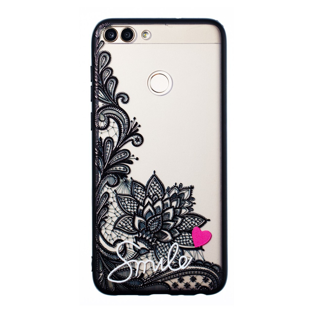 Casing Belakang Desain 2 In 1 Bahan Pc Tpu Motif Bunga Teratai Warna Hitam Untuk Huawei Enjoy 7s