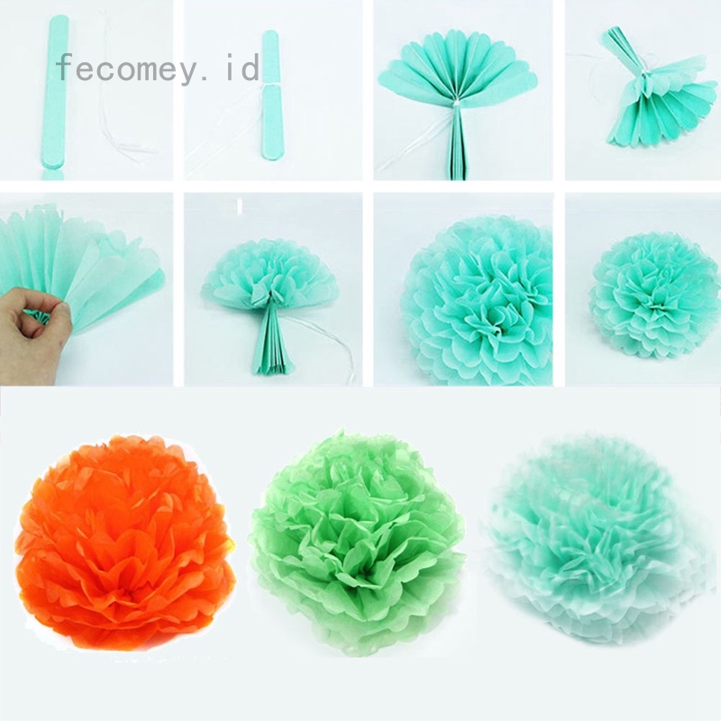 10pcs Set Bunga Bola Pom Pom Gantung Bahan Kertas Tisu 12 Untuk Dekorasi Pesta Ada Banyak Warna