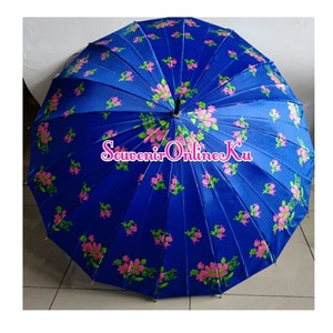 Payung Dewasa Jumbo Model Bahan Satin Motif Bunga Warna Biru Cantik Panjang Menarik Murah Meriah