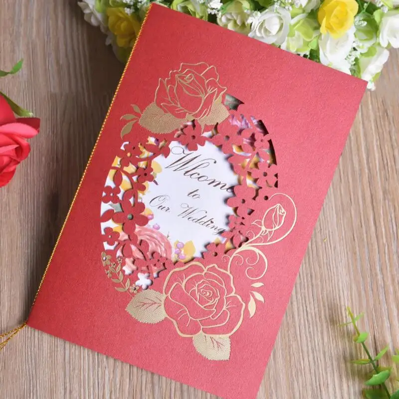 20 Pcs Lot Contoh Red Berongga Bunga Potong Laser Kartu