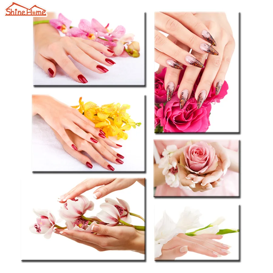 Us 18 19 35 Off Shinehome 6pcs Perawatan Spa Tubuh Nail Salon Dinding Karya Seni Kanvas Cetakan Lukisan Bunga Gambar Modular Untuk Dapur Art Deco In
