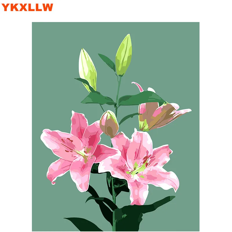 Us 8 13 51 Off Bunga Gambar Pink Lily Kantor Dekorasi Cat Minyak Gambar Lukisan By Numbers Menggambar Dengan Angka Diy Cat 40 50 Cm In Painting