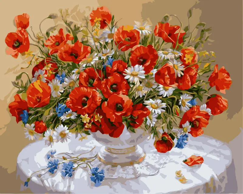 Lily Bunga Di Vas Putih Biru Lukisan Cat Minyak Lukisan Dengan Angka Menggambar Mewarnai Dengan Angka Diy Menggambar Dekorasi Ruang Tamu