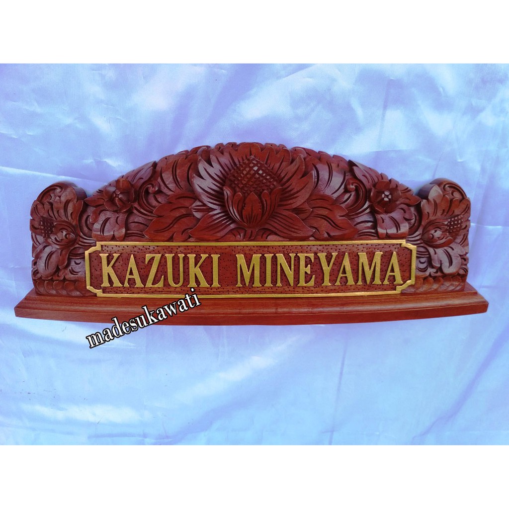 Papan Nama Name Plate Ukir Bali Bunga Teratai Isi Tatakan