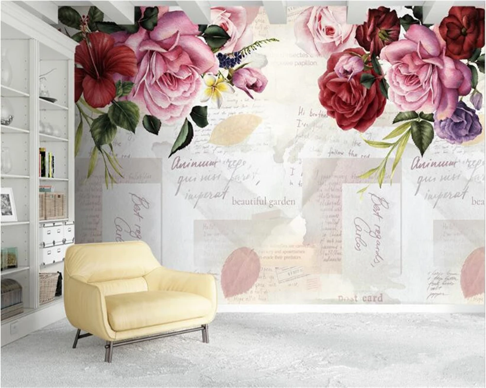 Us 8 85 41 Off Beibehang Kustom Yang Indah Kepribadian Wallpaper Nordic Retro Mawar Bunga Tangan Dicat Latar Belakang Papel De Parede 3d