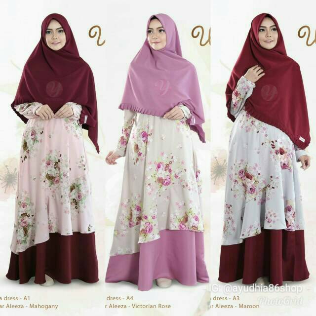 Warda Dress By Yasmeera Gamis Bunga Mix Polos Cantik