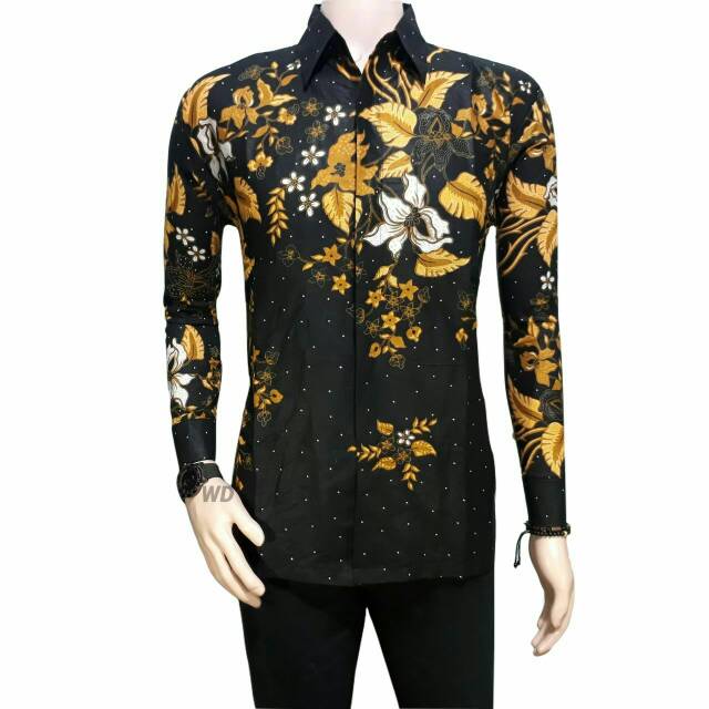 Kemeja Batik Pria Cowok Atasan Baju Batik Motif Bunga Simpel Casual Hitam Coklat Lengan Panjang