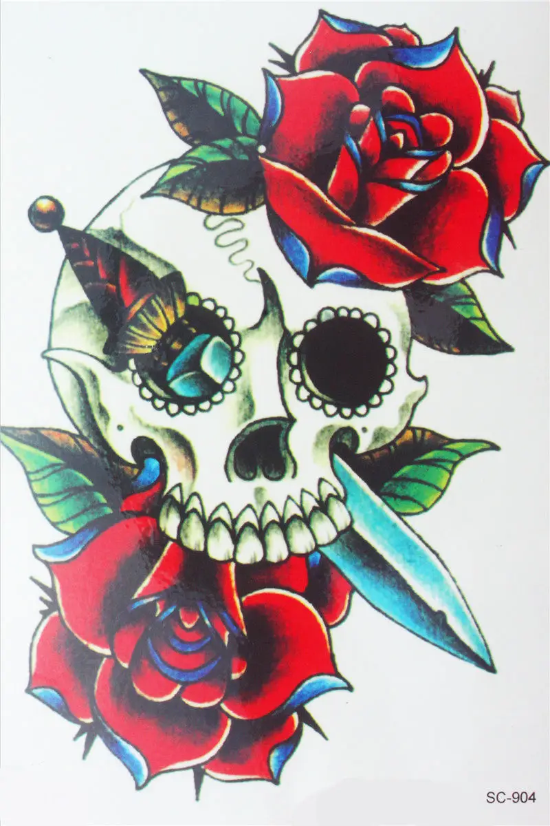 Us 0 68 Tubuh Seni Kecantikan Makeup Pink Seksi Berbahaya Tengkorak Dengan Tato Mawar 4d Tahan Air Tato Sementara Stiker In Sementara Tato From