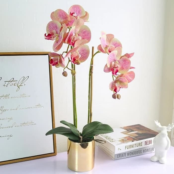 Bunga Anggrek Artificial Latex Import Real Touch Motif Pink Peach