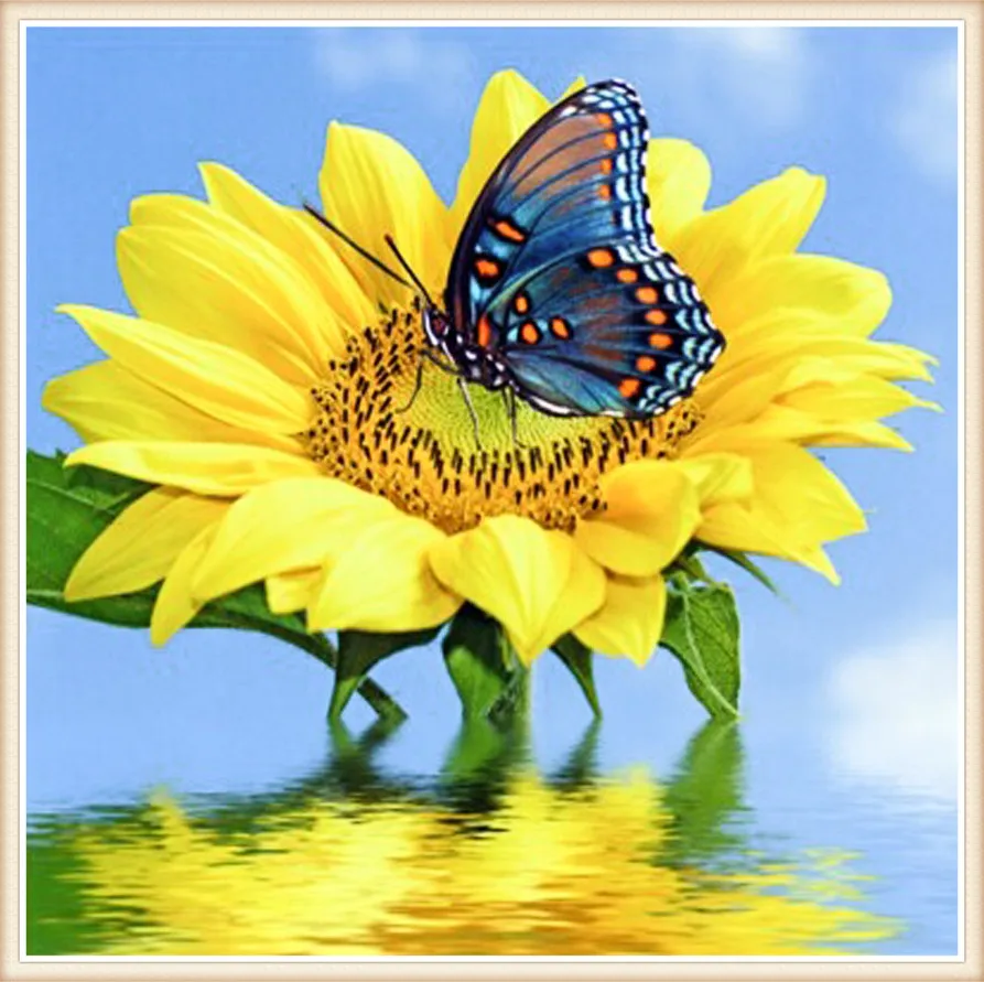 Us 7 0 Bunga Matahari Kupu Kupu Needlework 5d Berlian Bordir Mosaik Diy Berlian Lukisan Penuh Berlian Dengan Gambar Dekorasi Rumah Persegi In