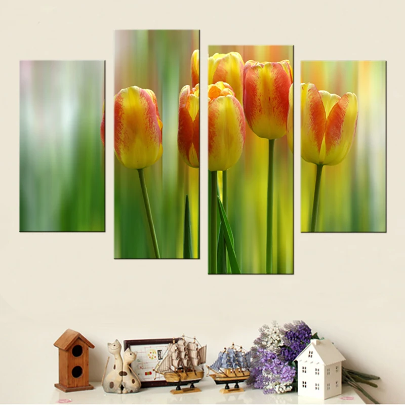 Us 8 01 65 Off 4 Panel Modern Minimalis Tanaman Bunga Tulip Foto Art Cetakan Poster Dinding Gambar Kanvas Lukisan Dekorasi Rumah In Painting