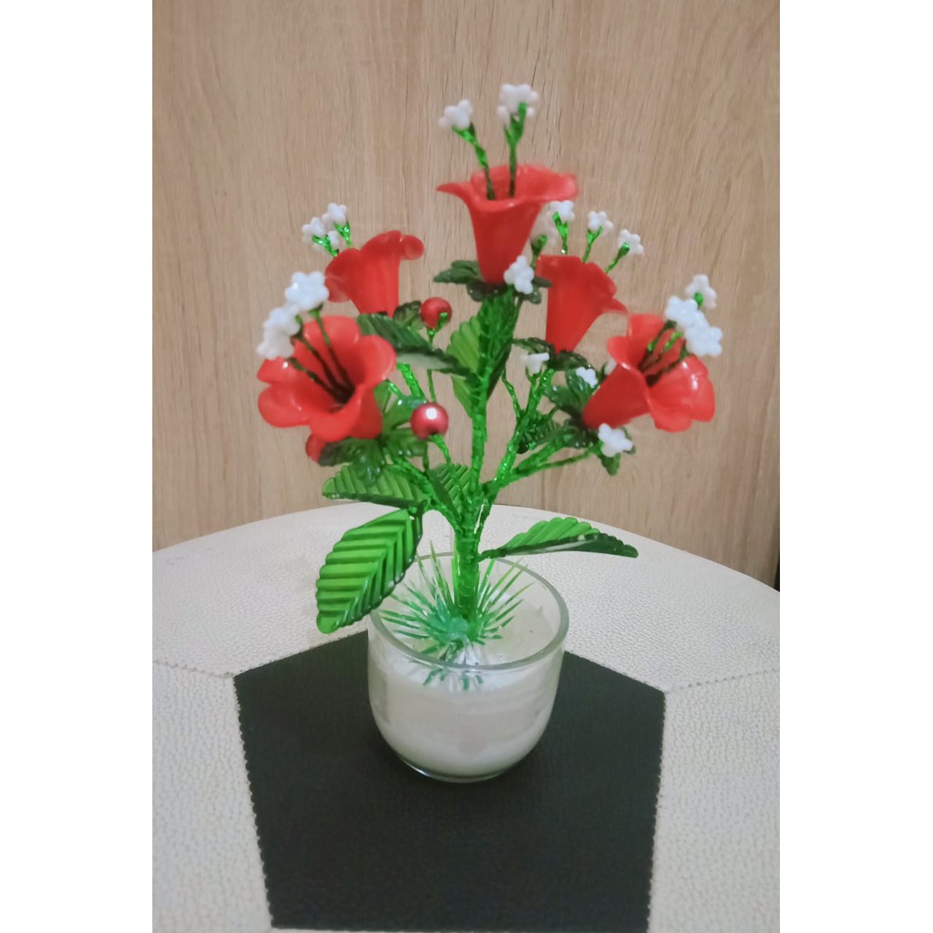 Bunga Akrilik Lili Kuning Putik Merah Mote Manik Akrilik Shopee Indonesia